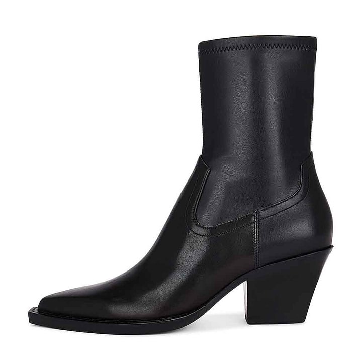 Black Pointed Toe Chunky Heel Side-Zip Classy Ankle Boots