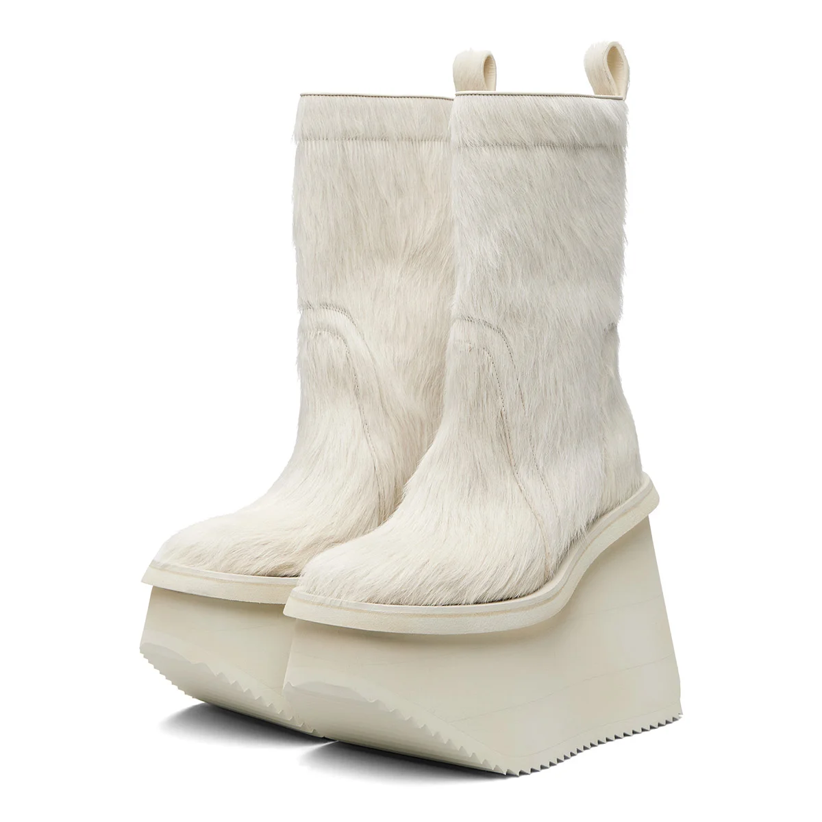 Custom Made White Round Toe Wedge Heel Faux Fur Platform Boots